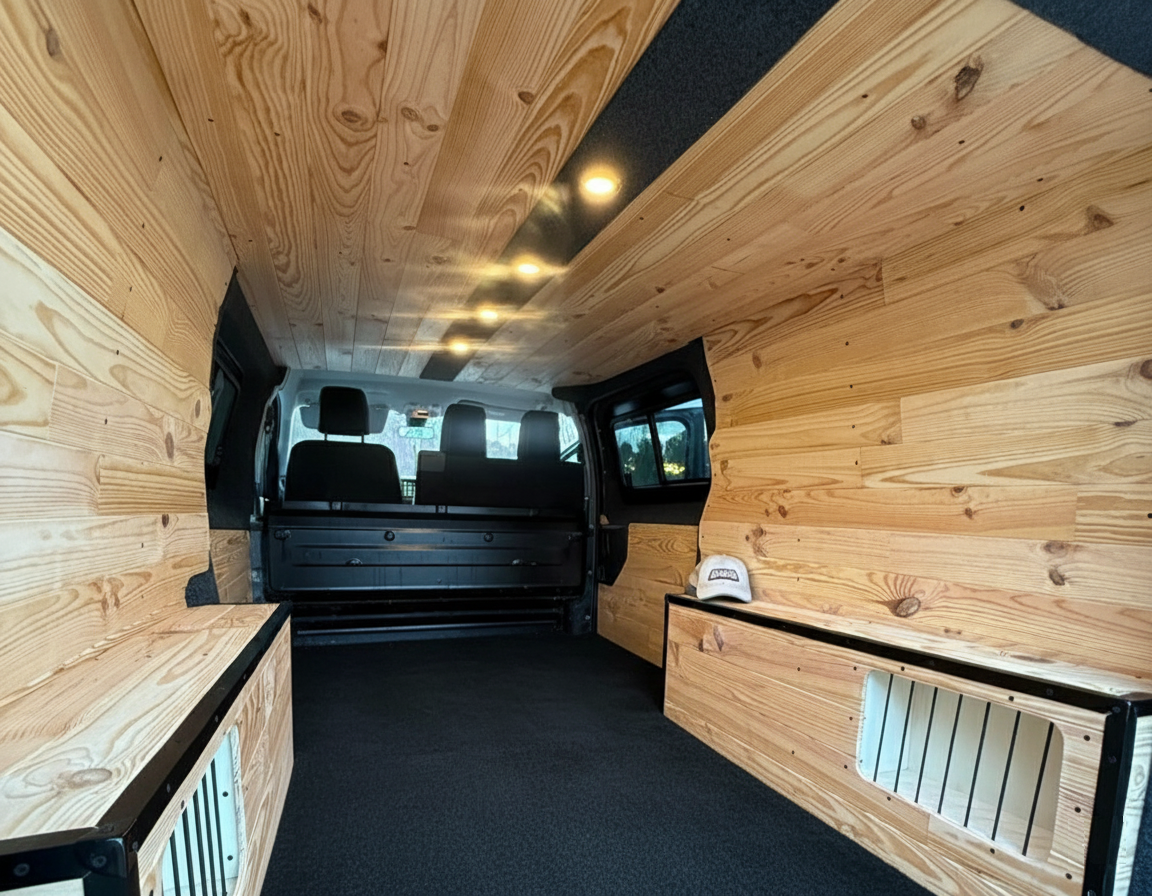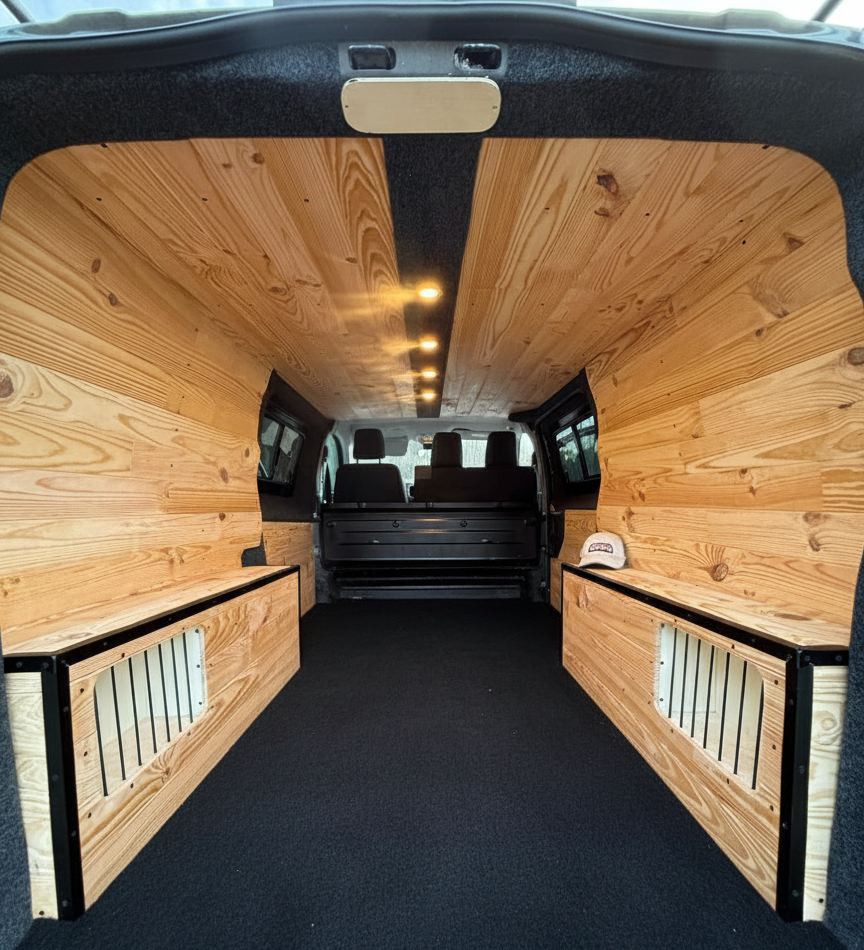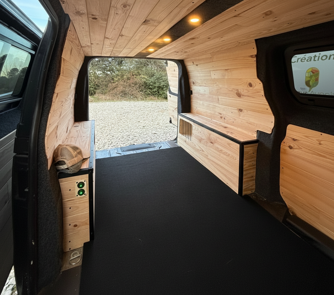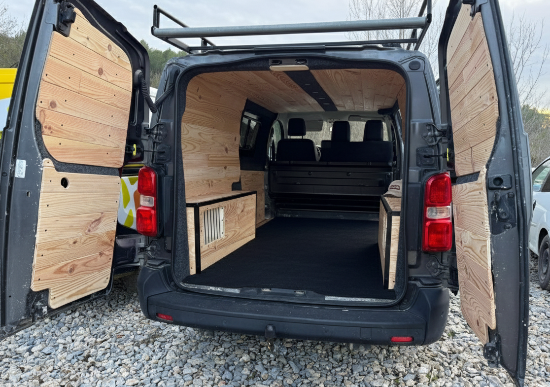 - Isolation des portes, des parois et du toit en Armaflex 19mm / 10mm et ajout de laine de chanvre Biofib dans les montants